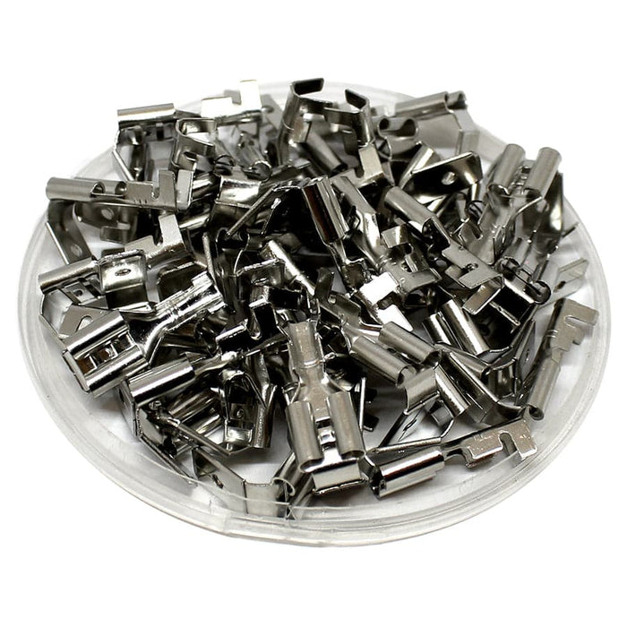 Open barrel terminals (Faston B Type Terminals) have two sets of open "teeth" that bite down into the wire and insulation to secure and hold onto them. This gives a much tighter hold than a closed barrel terminal would, making it ideal for applications that would cause the wire to move around or be pulled often.