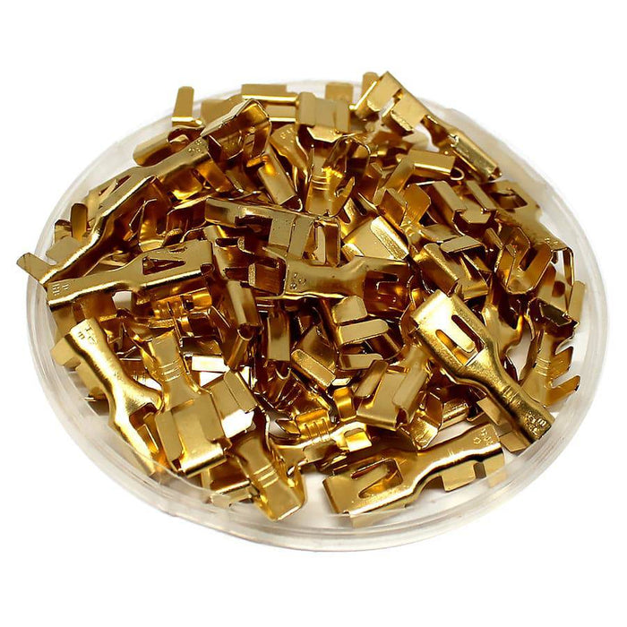 DJ621-B6.3D - 14 to 12 AWG Female Quick Disconnects, Brass, Lock Tab, 100 Pieces