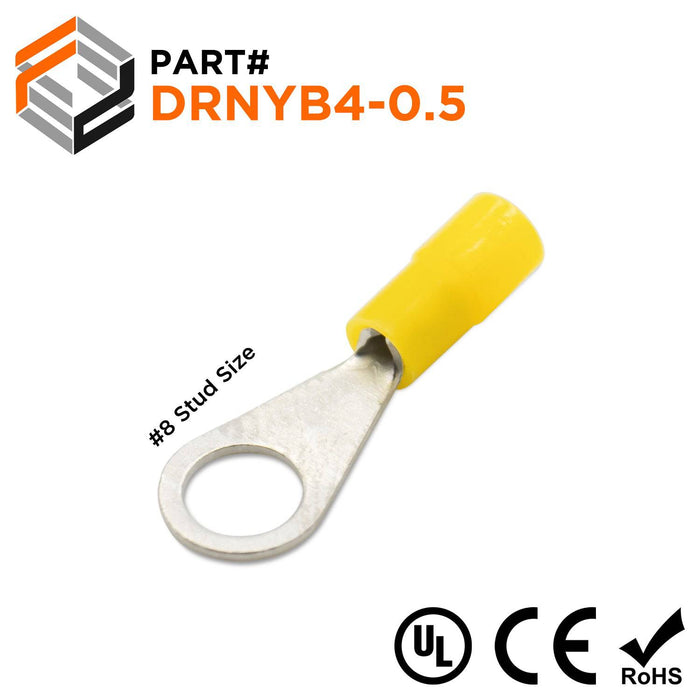 DRNYB4-0.5 Nylon Ring Terminal Brazed Seam 26-22AWG Yellow 100/pk