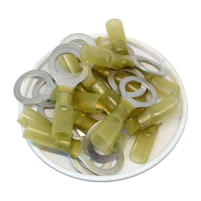 DSY12 - 12 to 10 AWG Heat Shrink Ring Terminals, 1/2" Stud, Polyolefin, 25 Pieces