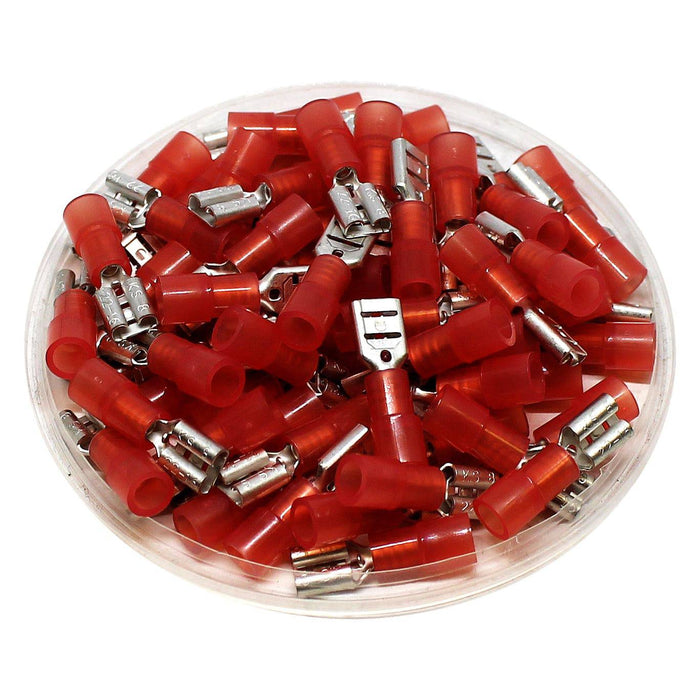 FDNY1-205(5) - 22 to 16 AWG Nylon Insulated Quick Disconnects, Female, Red, 100 Pieces