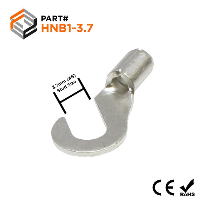22-16 AWG Non Insulated Hook Terminals, #6 Stud, Brazed Seam, UL, - HNB1-3.7