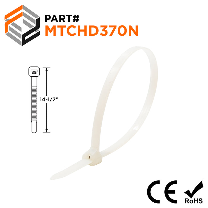 MTCHD370N - 14-1/2" Metal Tooth Heavy Duty Cable Ties, 120-lb Tensile Strength, Natural, 100-Pack