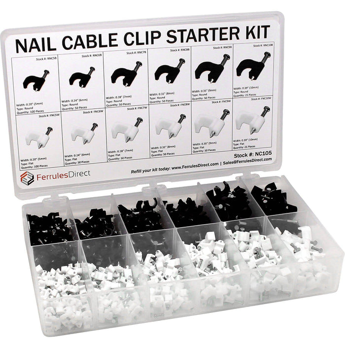 - Description: These convenient starter kits contain a wide variety of round and flat nail cable clips