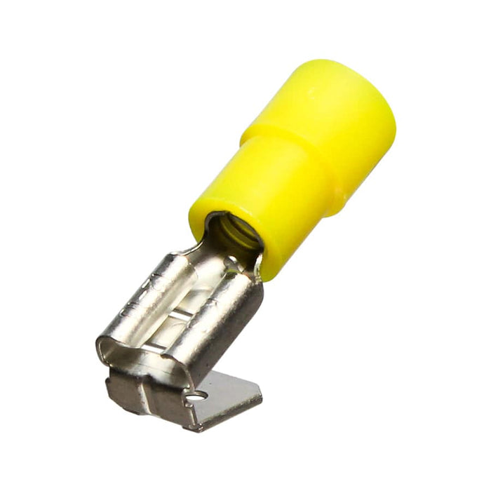 Vinyl insulated double crimp piggy-back terminals create a splice when fitted together with their counterparts. These terminals allow for a second connection via the "piggy-back" tab on the back of the terminal.