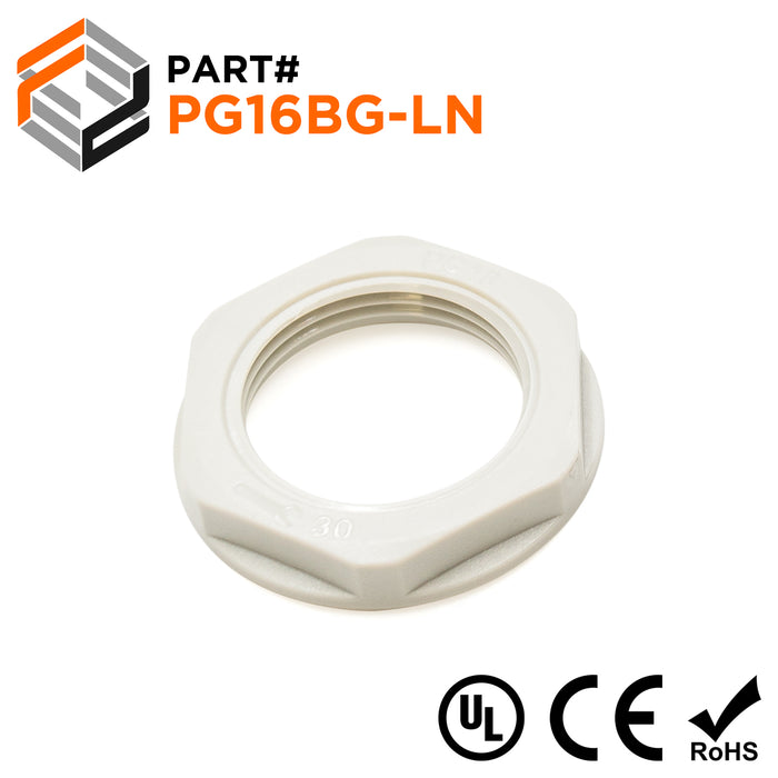 PG16 Thread Nylon Lock Nut for PG Cable Glands, Beige, UL Approved, 1 Piece - PG16BG-LN