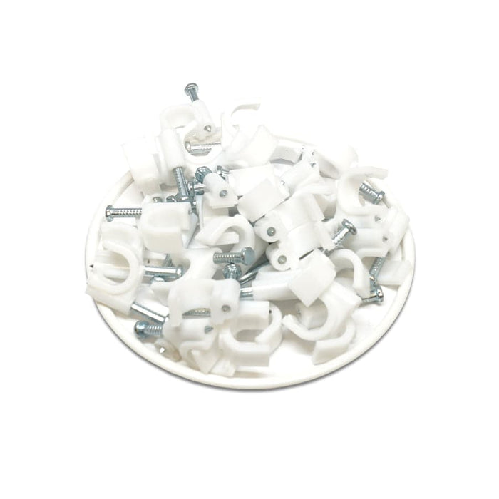 Nail In Cable Clips, Ethernet Cable Nails Tacks, Round, 8mm, 0.31", White, 100 Pieces - RNC8W