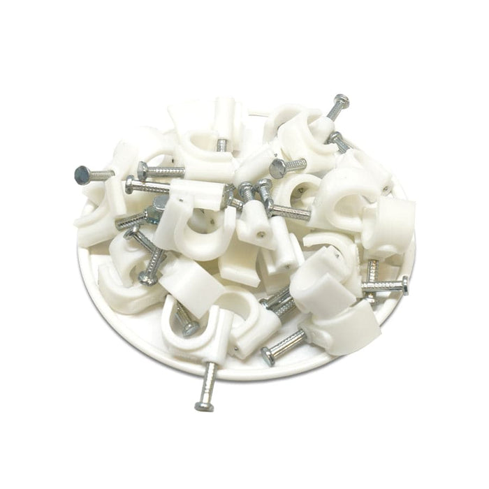 Nail In Cable Clips, Ethernet Cable Nails Tacks, Round, 9mm, 0.35", White, 100 Pieces - RNC9W