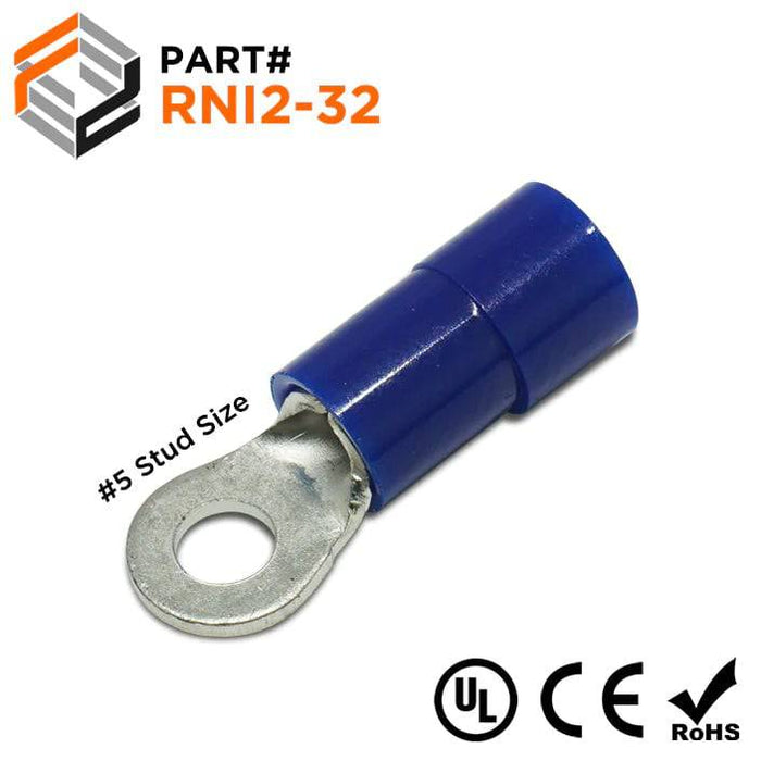 RNI2-32 - 16 to 14 AWG Polycarbonate Ring Terminals, #4 Stud, 100 Pieces