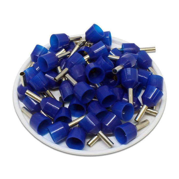 SC25008W - 14 AWG Insulated Wire Ferrules, 8mm Pin, Blue, XXL Collar, Short Circuit Protection, 100 Pieces
