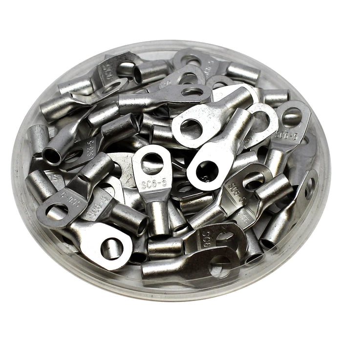 SCH66 - 10 AWG Non Insulated Tubular Ring Lugs. 1/4" Stud, 50 Pieces