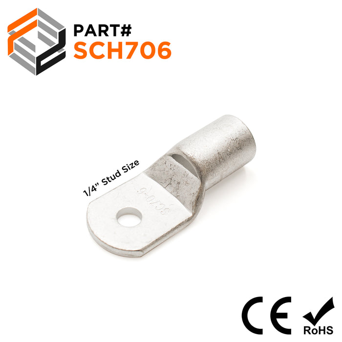 SCH706 - Non Insulated Tubular Ring Lugs, 2/0 AWG, 1/4" Stud, 10 Pieces