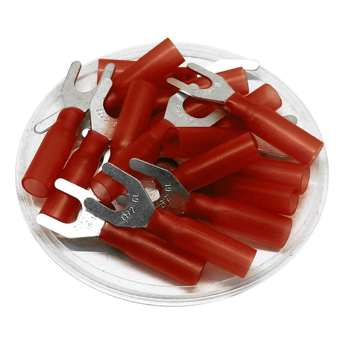 22 to 16 AWG Heat Shrink Spade Terminals, 1/4" Stud, Polyethylene, 25 Pieces - SHTL1-6