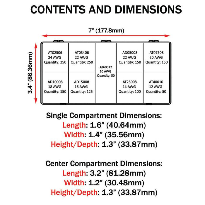 SK502 - 24 to 10 AWG Single Insulated Wire Ferrules Mini Kit, 1,275-Pieces, Series T, 1 Kit