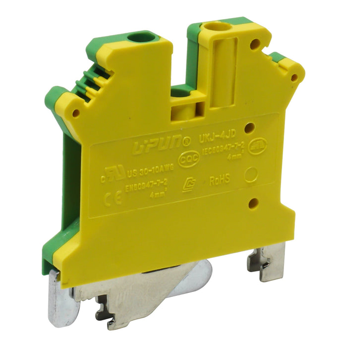 UKJ-4JD - 24 to 10 AWG Screw Clamp, Feed-Thru, Terminal Block, UL Approved, Yellow-Green